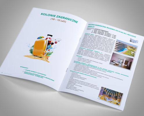 Katalogi, których grzbiet spina spirala to idealne rozwiązanie do wydruku instrukcji, karty menu, map turystycznych i samochodowych, przewodników. Przy projektowaniu katalogu spiralowanego należy pamiętać o zachowaniu większego marginesu od strony spirali na każdej stronie. Proponujemy zastosowanie foliowania okładki, aby podkreślić żywą kolorystykę i dodatkowo zabezpieczyć wydruk.