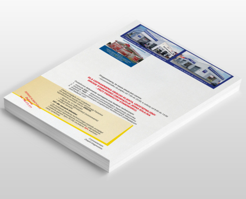 Papier offset 90 g, kolorowe jednostronne 4/0, format A4. Druk cyfrowy – termin realizacji do 3 dni roboczych.
